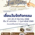 โครงการสิรีพฤกษศิลป์ ครั้งที่ 𝟴 “เทคนิคการเขียนภาพธรรมชาติ (𝐹𝑖𝑒𝑙𝑑 𝑆𝑘𝑒𝑡𝑐ℎ) ขอเลื่อนวันจัดกิจกรรมจาก 20-21 ธันวาคม 2568 เป็นวันที่ 31 มกราคม – 1 กุมภาพันธ์ 2569