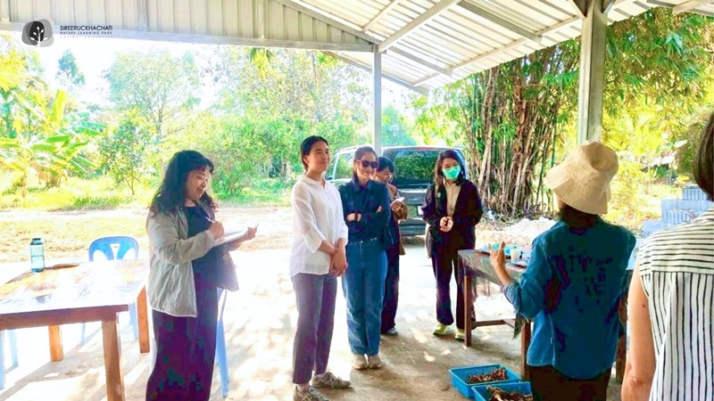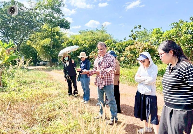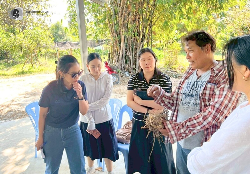 วันจันทร์ที่ 22 ธันวาคม 2568 รองศาสตราจารย์ ดร.ณัฏฐนียา โตรักษา ผู้อำนวยการโครงการจัดตั้งสถาบันอุทยานธรรมชาติวิทยาสิรีรุกขชาติ, คุณพุธิตา คชินทร เลขาธิการสถาบันเค อะโกร-อินโนเวท, คุณกันต์ฤทัย-คุณเมษา ว่องกุศลกิจ, ดร.สุนิสา แสงวิโรจนพัฒน์ รองผู้อำนวยการฝ่ายวิจัยโครงการจัดตั้งฯ และทีมวิจัยโครงการนำร่องแก้ปัญหาและผลิตหัวพันธุ์พืชวงศ์ขิงคุณภาพดีทนทานต่อโรค ซึ่งเป็นส่วนหนึ่งของโครงการ ”น่าน Sandbox” สนับสนุนโดยมูลนิธิกสิกรไทย (สถาบัน เค อะโกร-อินโนเวท) ได้ศึกษาดูงานฟาร์มเกษตร “สวนสมุนไพร บ้านเอวีรุ่งเรือง” อำเภอพนมสารคาม จังหวัดฉะเชิงเทรา ซึ่งเป็นฟาร์มเกษตรอินทรีย์ที่ได้รับการรับรองมาตรฐาน GAP (Good Agricultural Practice) เพื่อถอดองค์รู้แนวทางการปลูกและเทคนิคการจัดการแปลงปลูก “ไพล” และ “ขมิ้นชัน” เพื่อให้ได้ต้นพืชแข็งแรงและให้สารสำคัญในระดับที่เหมาะสม รวมถึงเรียนรู้การแปรรูป กลยุทธ์การเพิ่มมูลค่าผลผลิตพืชสมุนไพร และการประยุกต์ใช้ศาสตร์ภูมิปัญญาการแพทย์แผนไทย